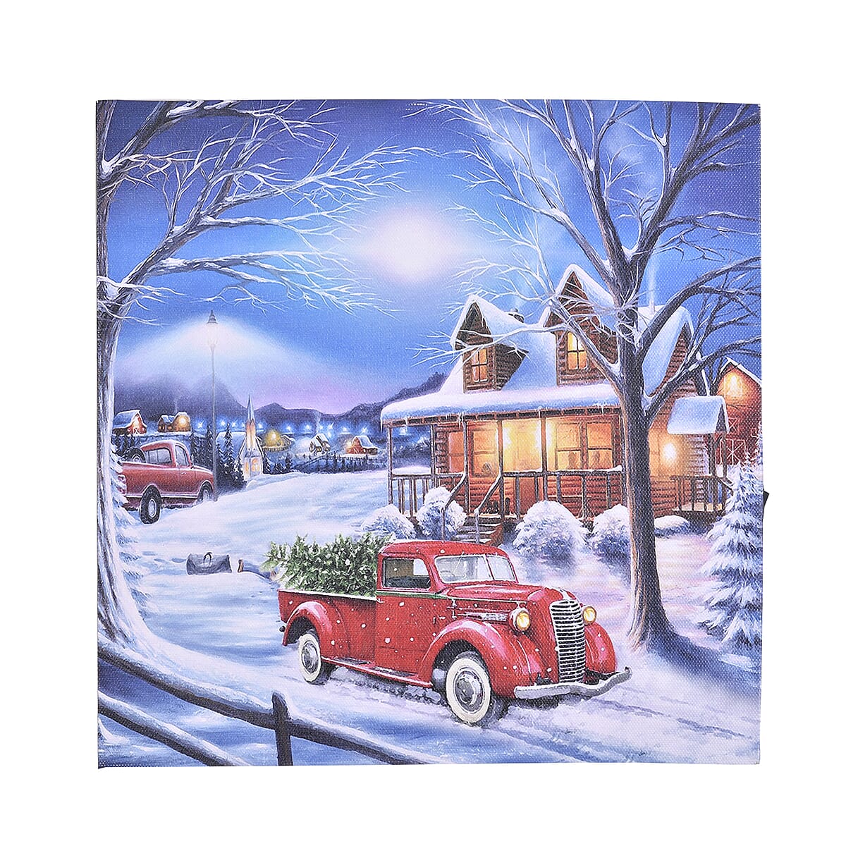 Homesmart Multi Color Canvas 5-LED Car and snow House Painting (2xAA Battery Not Included)