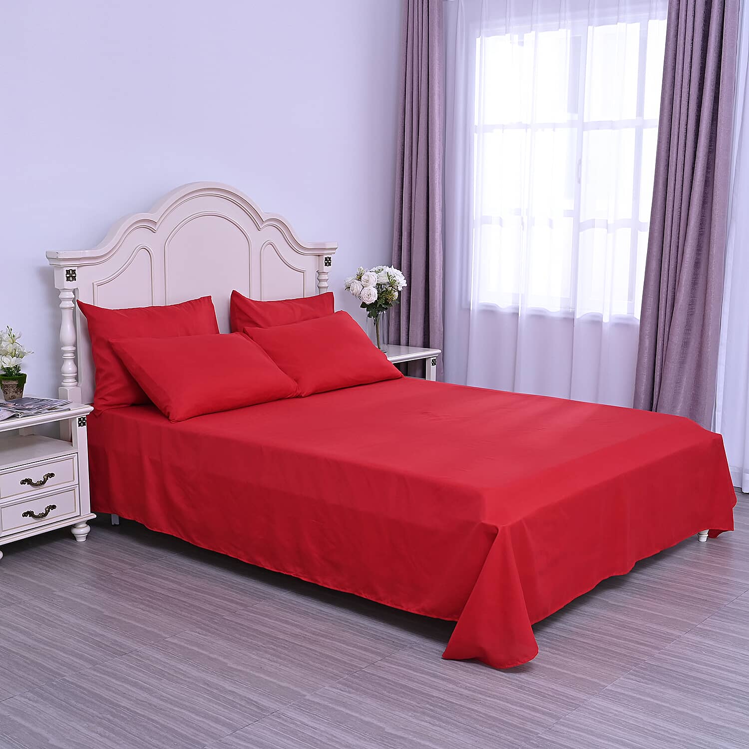 1 Flat Sheet, 1 Fitted Sheet, 4 Pillow Cases |