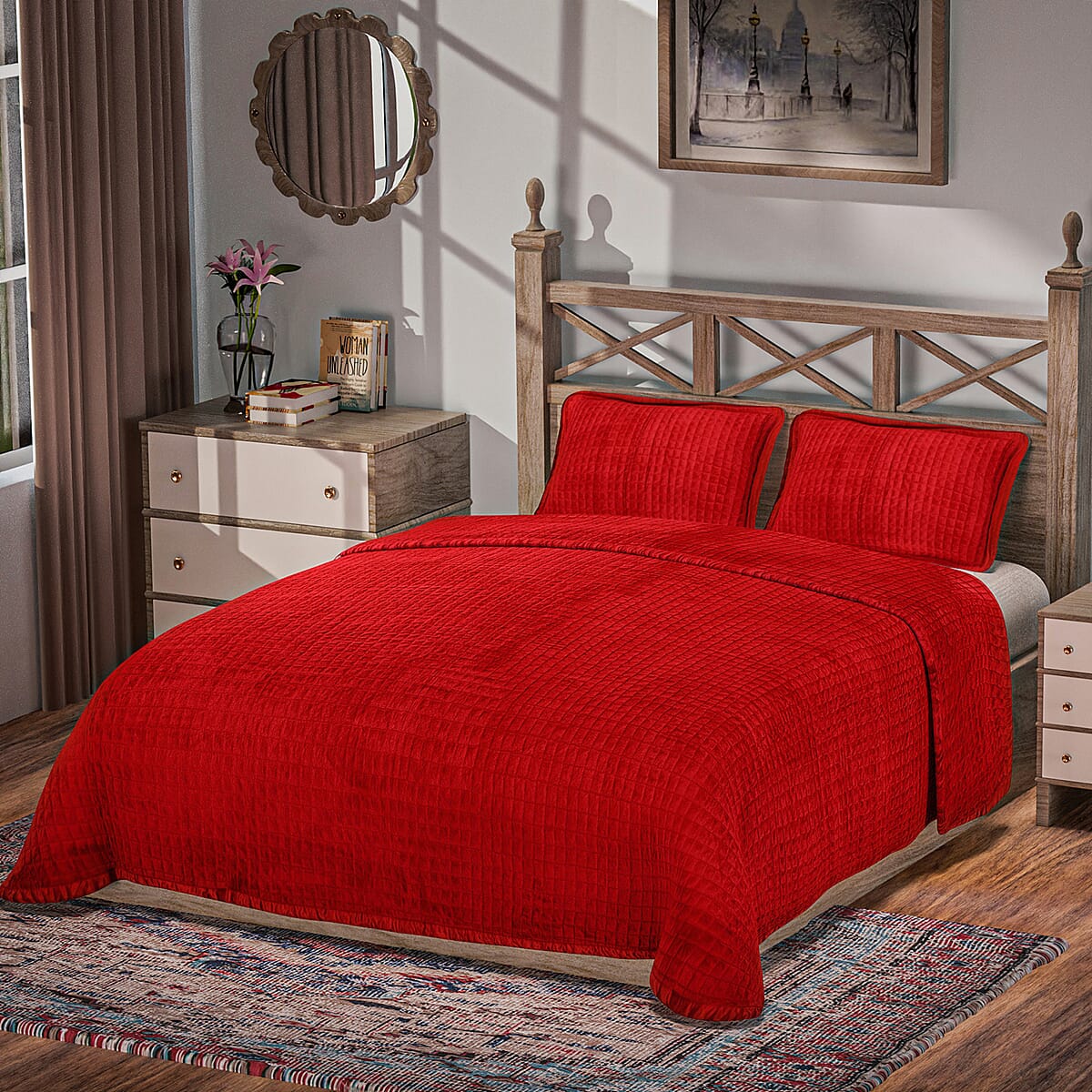 Homesmart Red Ultra Soft Crystal Velvet 3pcs Comforter Set - Queen