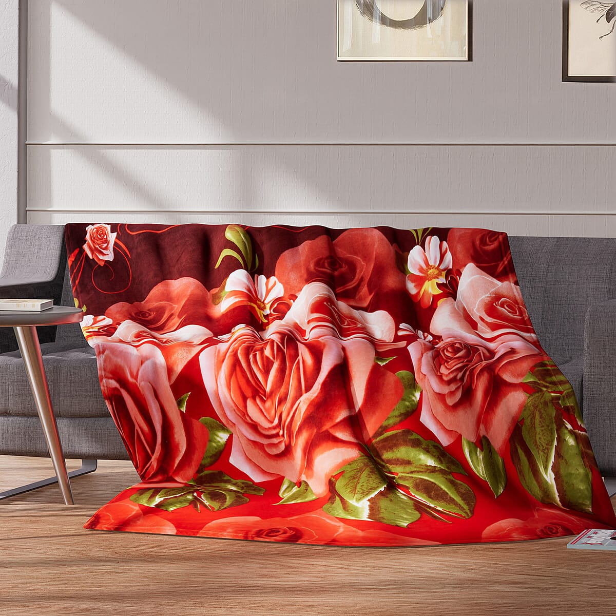 Homesmart Rose Pattern Microfiber Single Layer Flannel Blanket