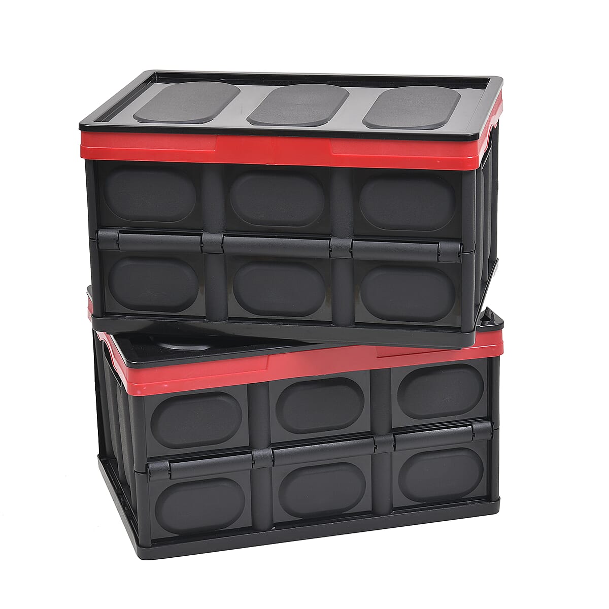 HOMESMART Set of 2 Black Folding Storage Boxes with Lids , Storage Bins , Container Box , Outdoor Storage Box