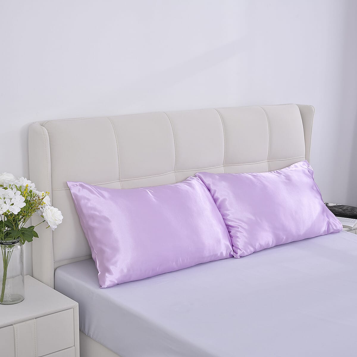 Homesmart Set of 2 Light Purple Luxury Satin Pillow Case - Queen