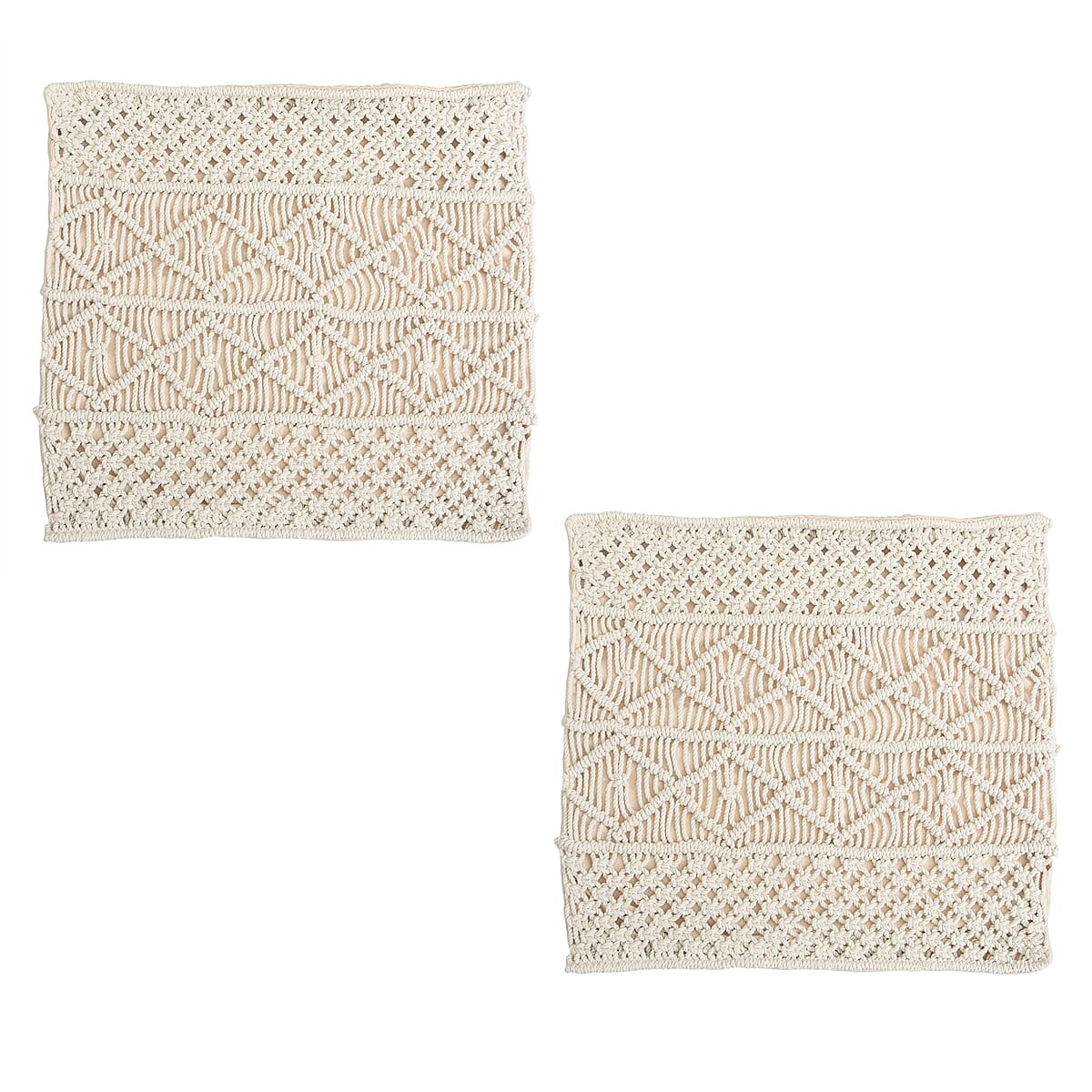 Homesmart Set of 2 Off White Macrame Cotton Cushion Covers , Pillow Protectors , Pillow Cover , Pillow Shams , Pillow Case Covers