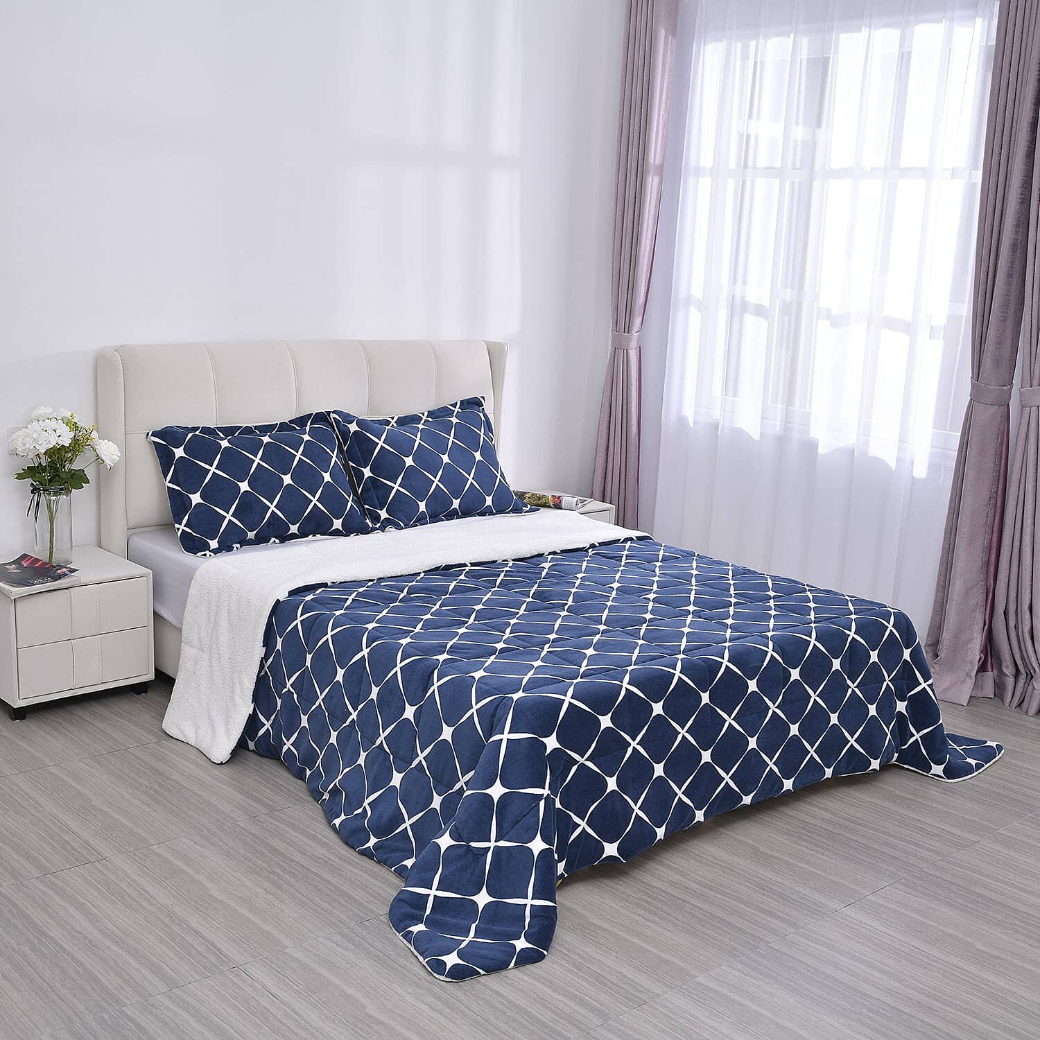 Homesmart Set of 3 Navy Coral Fleece and Sherpa Comforter and Pillowcase