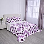 HOMESMART Set of 3 Purple Checkered Printed Sherpa Comforter (88x92) and Pillowcase (20x26)