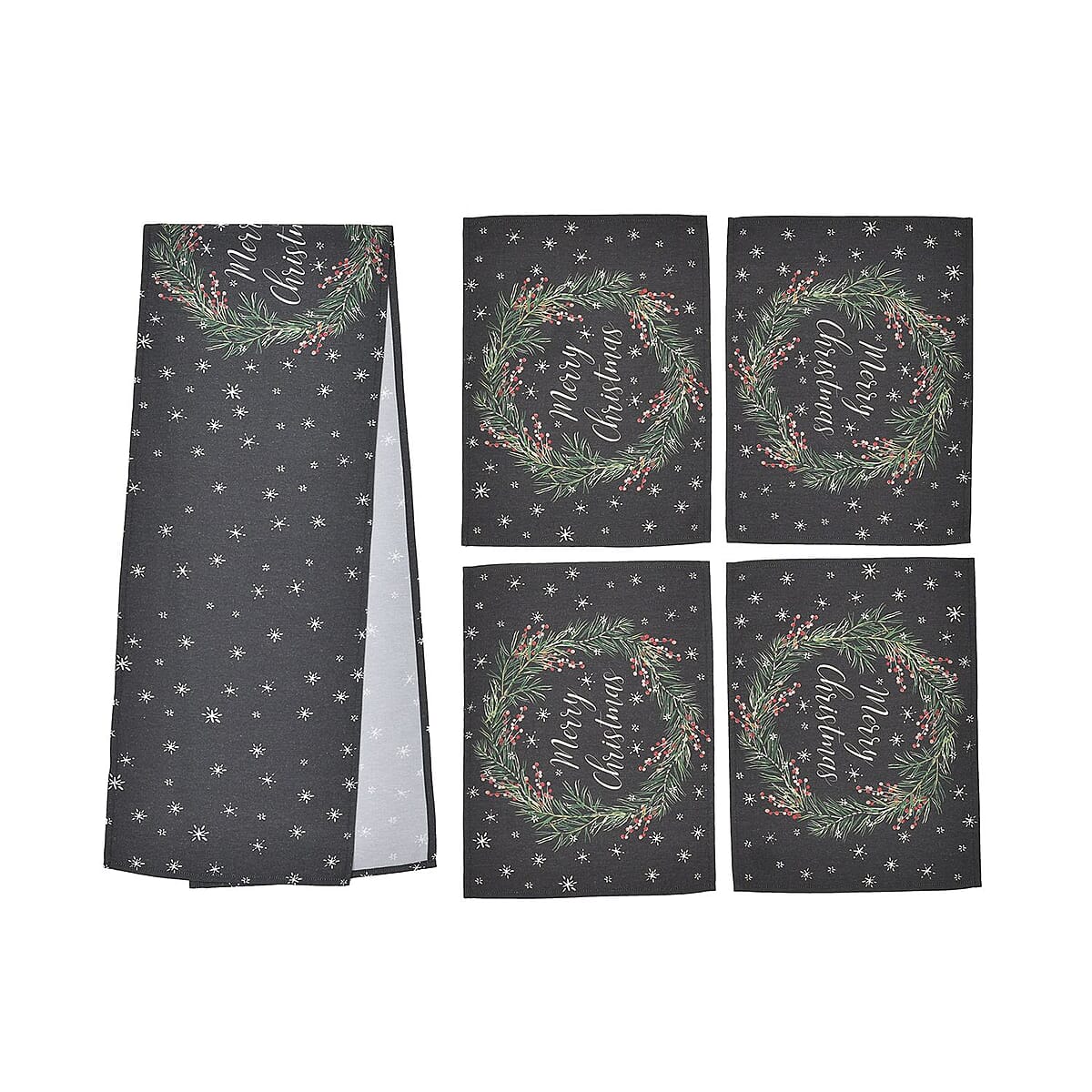 Homesmart Set of 4 Placemats and Table Runner For 4 Seater Dinning Table, 4 Washable Wrinkle Resistant Placemats and Table Runner - Snowflakes & Wreath Decor Pattern