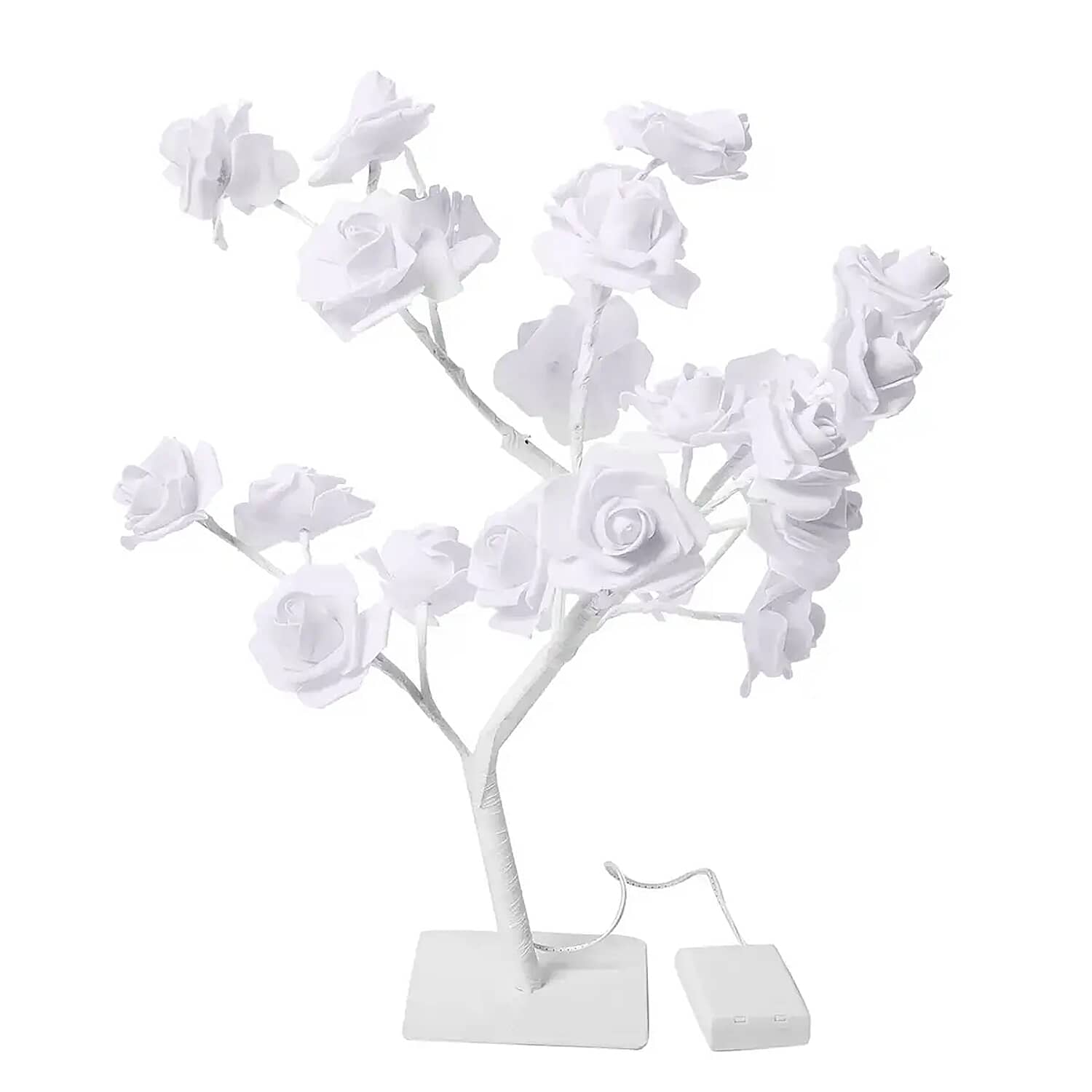 Homesmart White LED Rose Tree Home Decoration 24 LED Lighting, Desk Tree Lamp, Table Lamp Rose Flower, Festival Lamp Creative Gift - White Table Lamp (Battery Not Included)