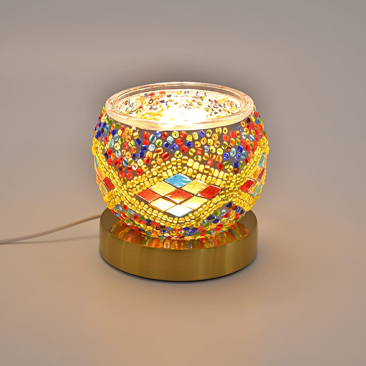 Embark on a journey of light and wonder with the Homesmart Turkish Mosaic glass table lamp. This exquisite mosaic table lamp is a testament to the mystical art of Turkish glassmaking, transforming ordinary spaces into realms of enchanting light. Each lamp, meticulously handcrafted, weaves a spell of Moroccan elegance and color, casting a soothing glow that dances across the room. The lamp, powered by a 5-watt E12 bulb, is more than a source of illumination; it's a beacon of creativity and style, perfect for those seeking to add a touch of magic to their indoor lighting.