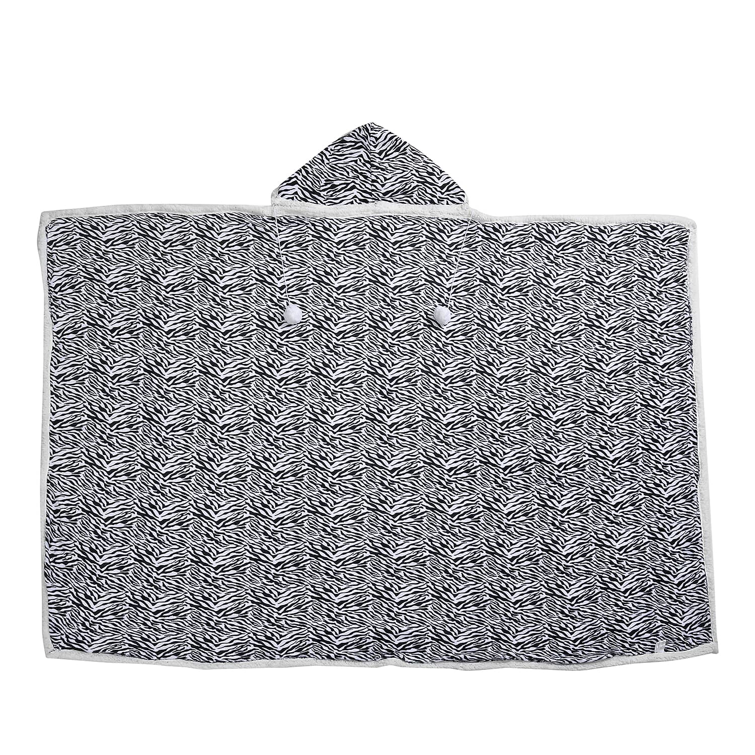 Homesmart Zebra Stripe Pattern Polyester and Sherpa Hoodie Blanket with Pom Pom