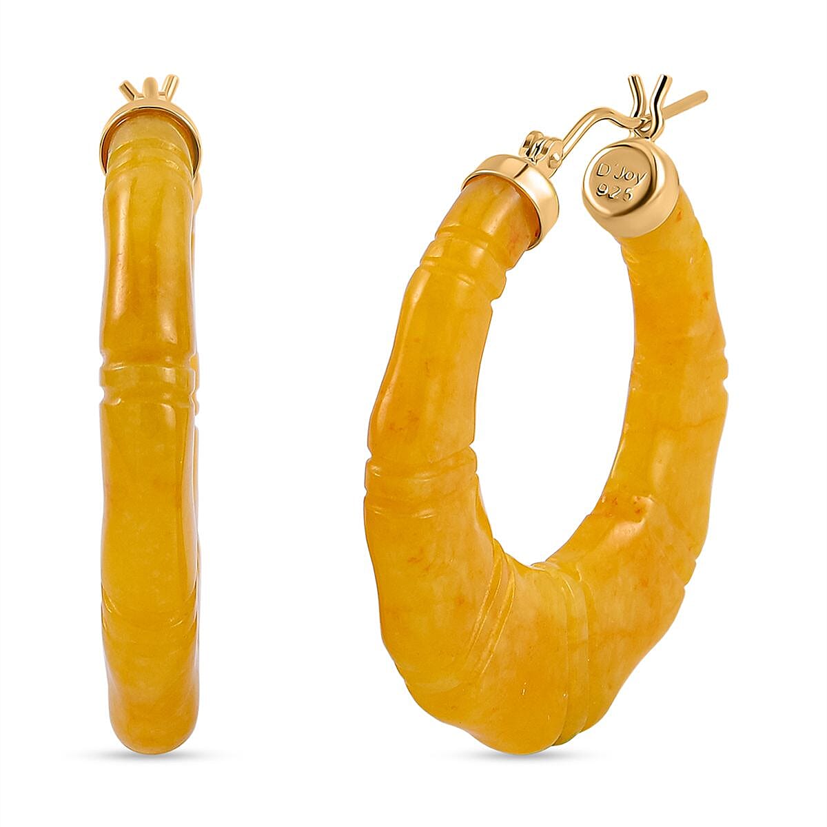 Honey Jade (D) Carved Hoop Earrings in 14K YG Over Sterling Silver 80.00 ctw