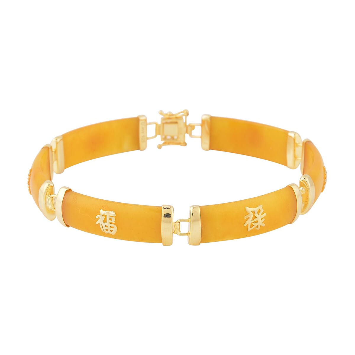 Honey Jade (D) Station Bracelet , Honey Jade Bracelet , 14K Yellow Gold Over Sterling Silver Bracelet , Symbols Bracelet , Silver Station Bracelet (6.00 In) 60.00 ctw