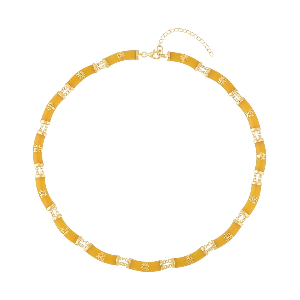 Honey Jade (D) Station Necklace 18-20 Inches in 14K Yellow Gold Over Sterling Silver 96.50 ctw