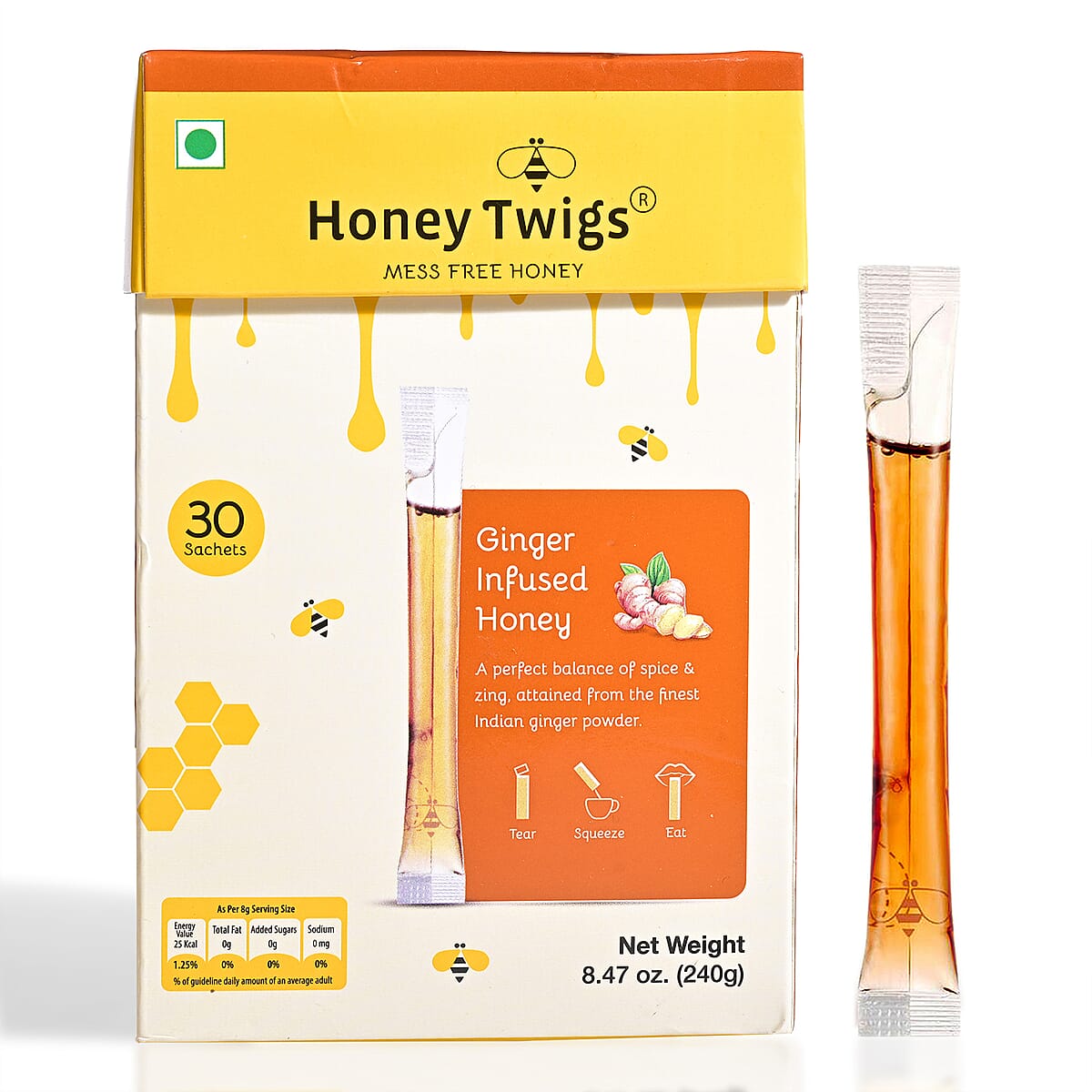 Honey Twigs Ginger Infused Honey Sticks - 30 Count Single Serve Natural Honey Straws - 8.47 oz