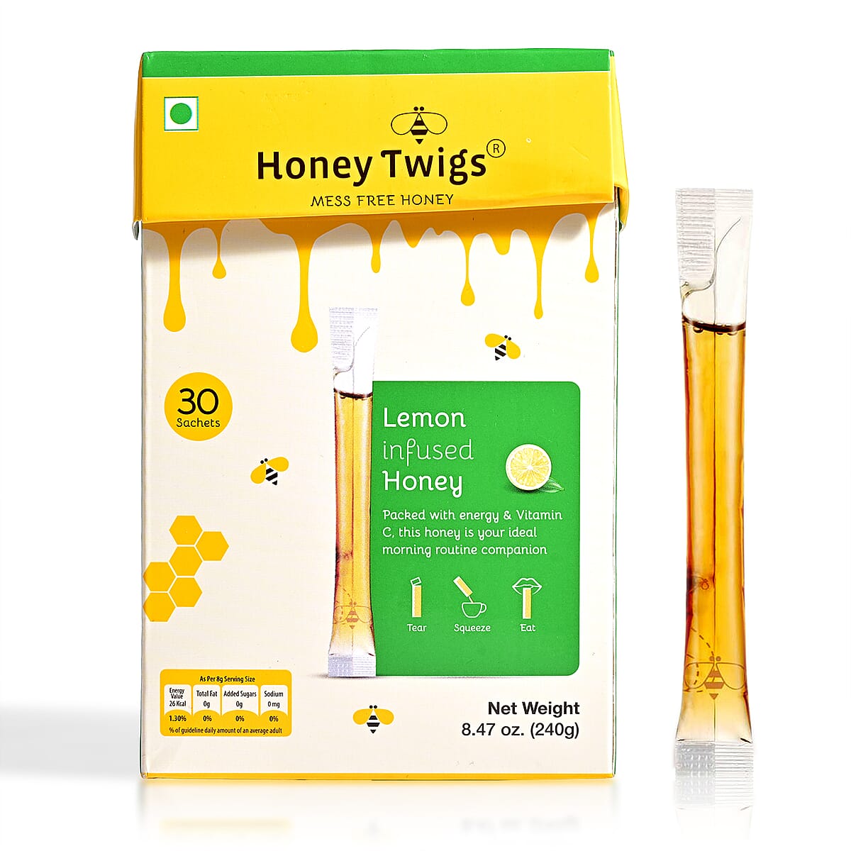 Honey Twigs Lemon Infused Honey Sticks - 30 Count Single Serve Natural Honey Straws - 8.47 oz