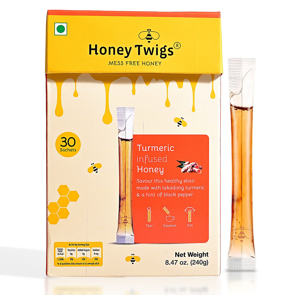 Honey Twigs Turmeric Infused Honey Sticks - 30 Count Single Serve Natural Honey Straws - 8.47oz