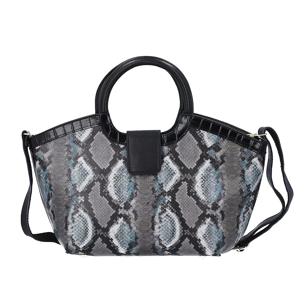 Hong Kong Closeout Black and Multicolor Snake Print Pattern Genuine Leather Tote Bag with Shoulder Straps