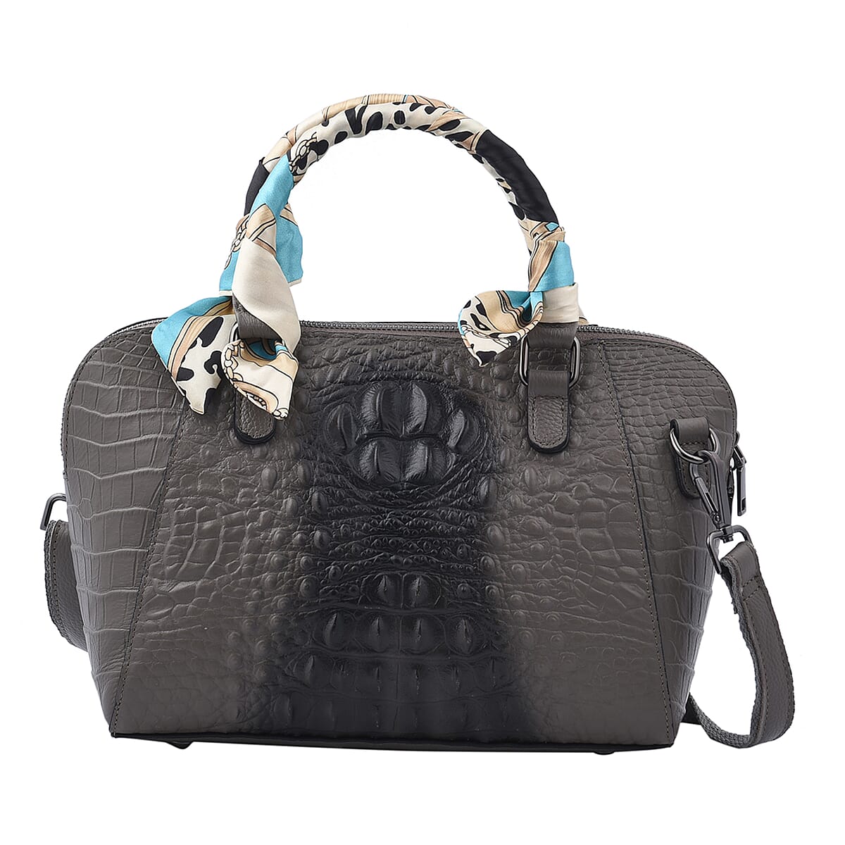 Hong Kong Closeout Gray Crocodile Embossed Genuine Leather Crossbody Bag with Scarf and Shoulder Strap