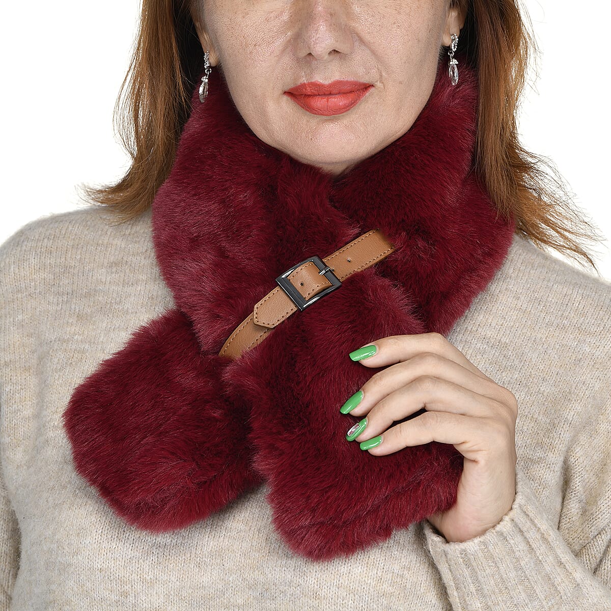 Hong Kong Closeout Red Faux Fur Polyester Scarf with Buckle