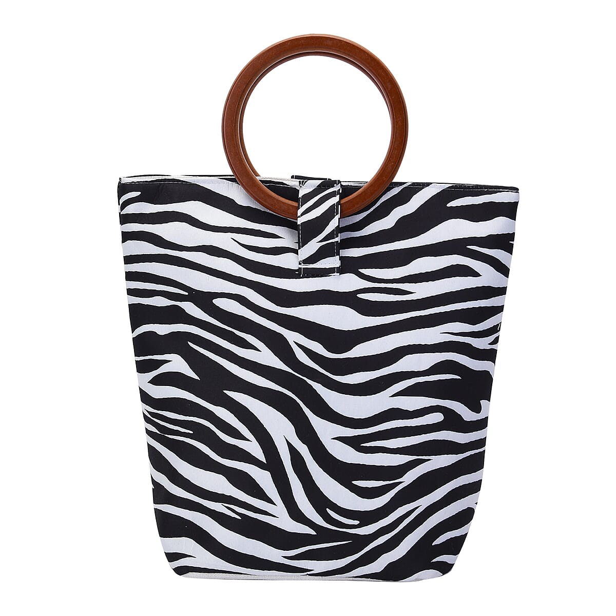 Hong Kong Collection Designer Inspired Black and White Zebra Print Tote Bag with Wooden Handle