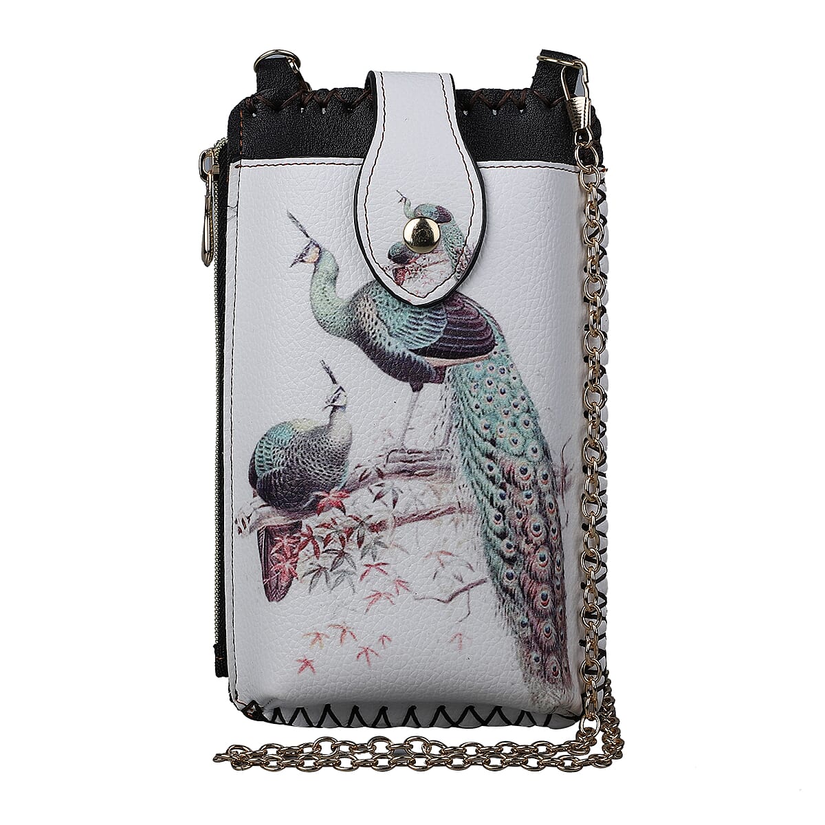 HongKong Closeout Stylish and Classic Peacock Pattern Cell Phone Bag with Chain Shoulder Strap - White