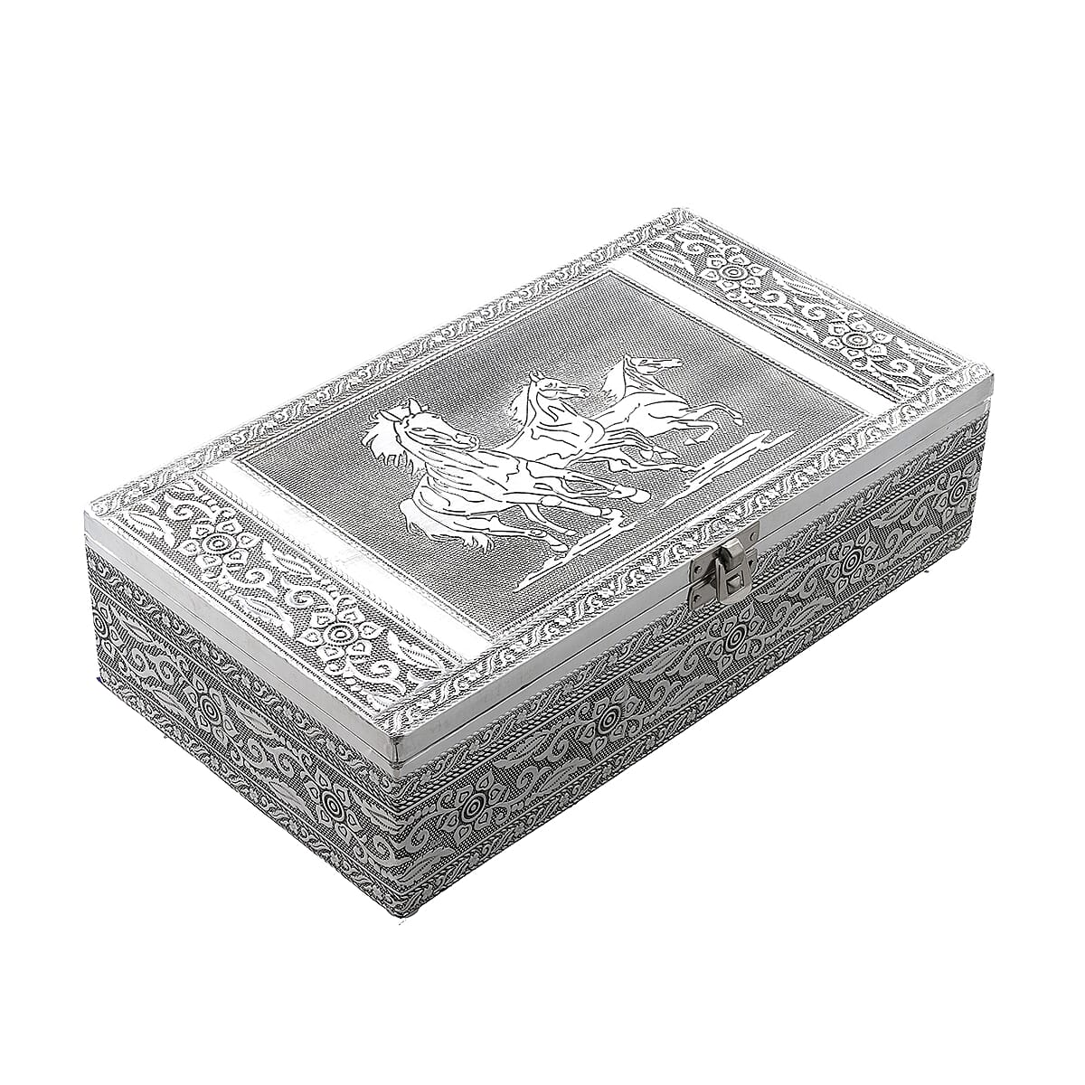 "Horse Embossed Aluminium Oxidized Storage Box Size: 11(L)x6(W)x3(H) inches"