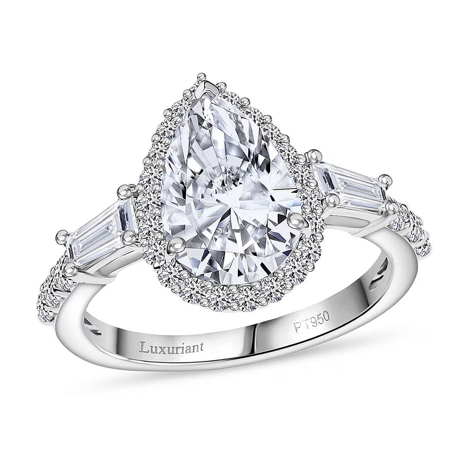 IGI Certified 950 Platinum Luxuriant Lab Grown Diamond (E-F, VS) Dew Drop Ring (Size 8.5) 3.00 ctw