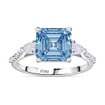 IGI Certified Asscher Cut Luxuriant Lab Grown Blue Diamond VS and Lab Grown Diamond 4.15 ctw Azure Majesty Ring in 950 Platinum (Size 9.0) 4.50 Grams