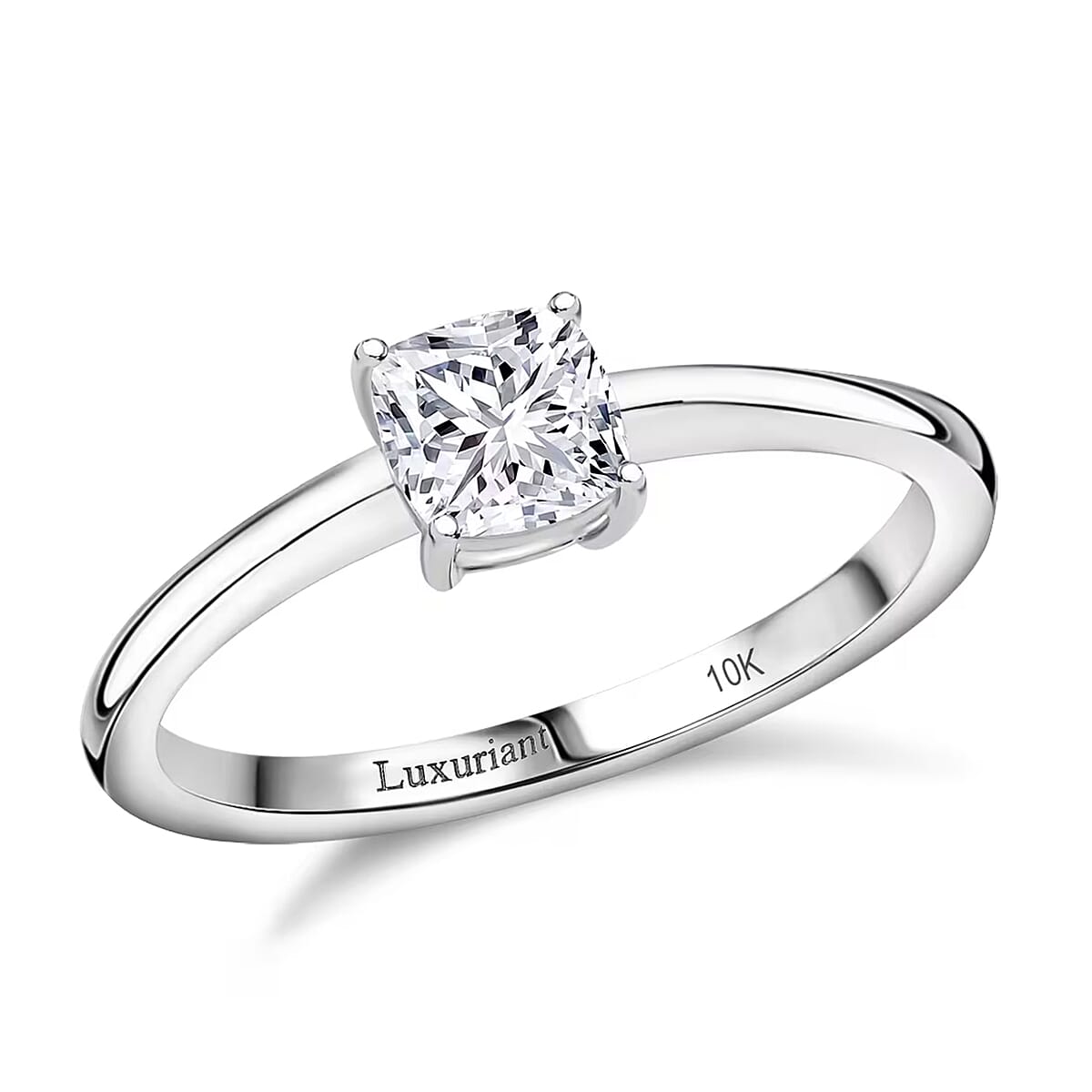 Q: Q. How should I clean and care for this ring? A. Use warm water, mild soap, and a soft brush. Rinse thoroughly and dry with a soft, lint-free cloth. Q. Is this ring hypoallergenic? A. Yes, 10K white gold is safe and comfortable for most skin types, making it perfect for sensitive skin. Q. Is this ring suitable for daily wear? A. Yes, the durable 10K gold and secure prong setting make it ideal for everyday elegance and special occasions. Q. What makes this ring unique? A. This Luxuriant solitaire ring features a brilliant 1.00 ctw E-F VS lab-grown diamond, offering timeless elegance and sustainable luxury. Q. Is the ring certified? A. Yes, this ring comes with an official IGI certification verifying the diamondβs authenticity and quality. Q. Can I use this ring as an engagement ring? A. Absolutely. The solitaire design and IGI-certified diamond make it a stunning choice for engagements or anniversaries.