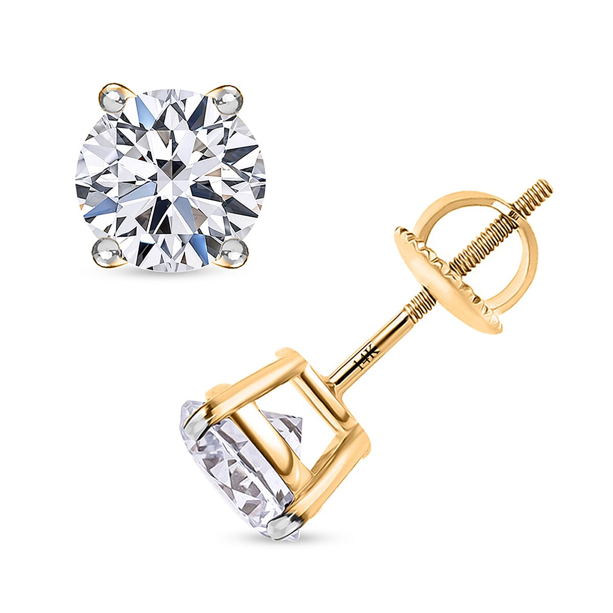 IGI Certified Luxuriant Lab Grown Diamond E-F VS 1.50 ctw Stud Earrings in 14K Yellow Gold