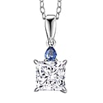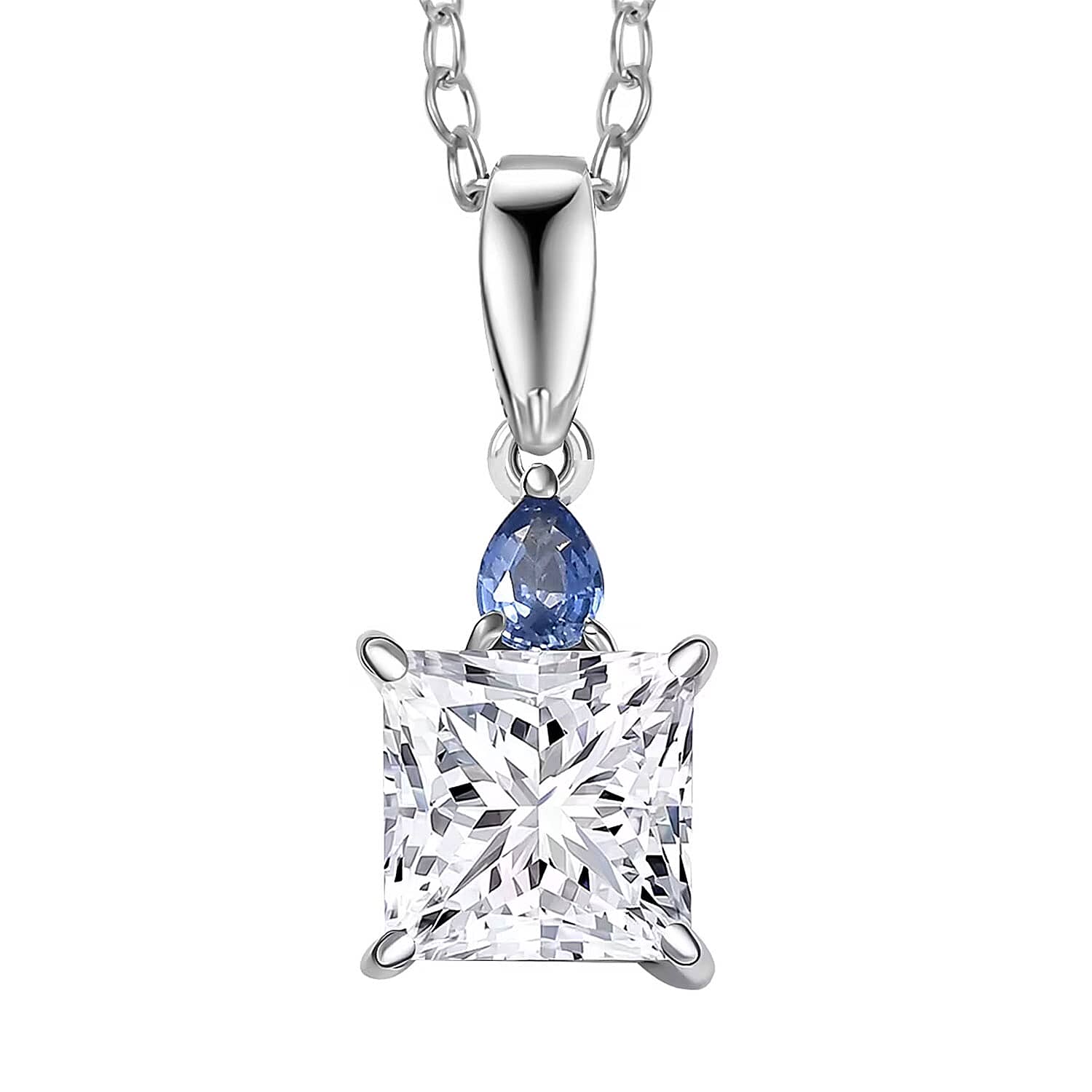 IGI Certified Princess Cut Luxuriant Lab Grown Diamond E-F VS and Ceylon Blue Sapphire 2.15 ctw Pendant Necklace in 950 Platinum 20 Inches