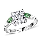 IGI Certified Princess Cut Luxuriant Lab Grown Diamond E-F VS and Tsavorite Garnet 2.40 ctw Celestial Crown Ring in 950 Platinum (Size 6.0)