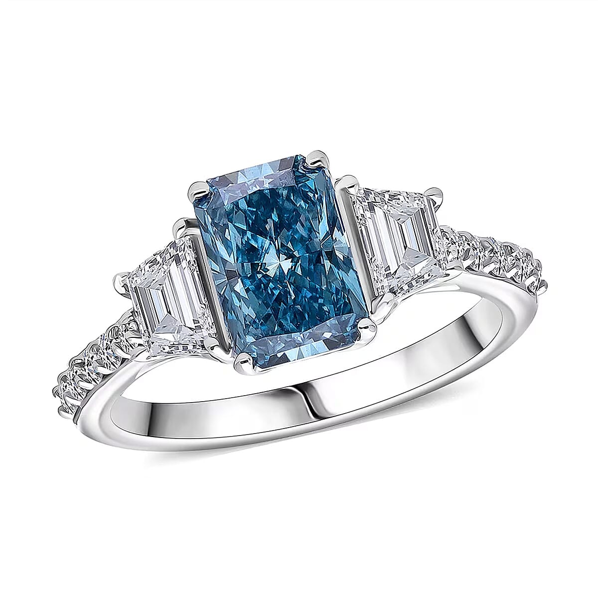 IGI Certified Radiant Cut Luxuriant Lab Grown Blue Diamond (IR) VS and Lab Grown Diamond 3.00 ctw Blue Dynasty Ring in 950 Platinum (Size 9.5) 5 Grams