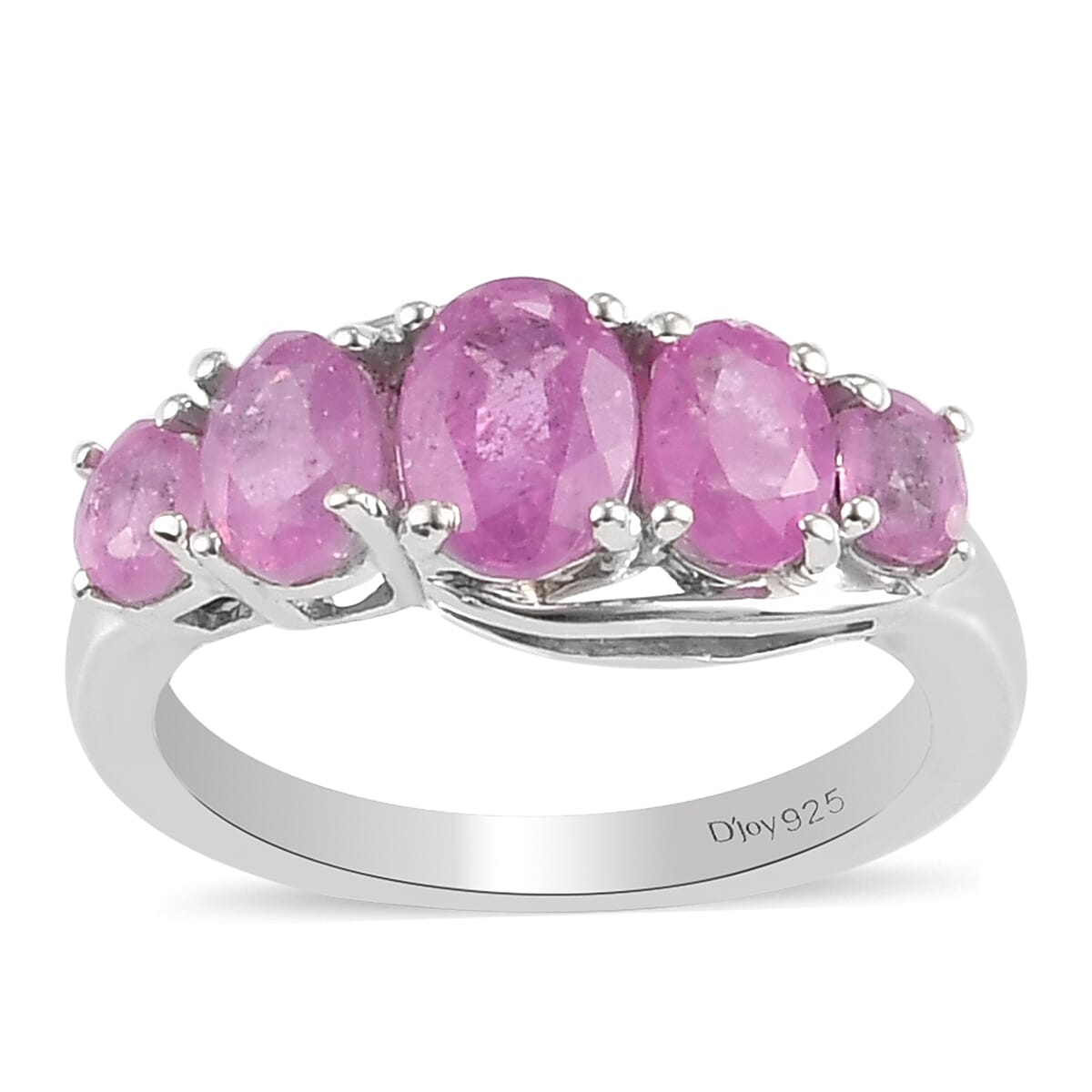 Ilakaka Hot Pink Sapphire 5 Stone Ring in Platinum Over Sterling Silver (Size 7.0) 3.20 ctw