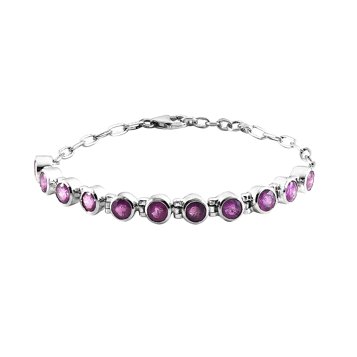 Ilakaka Hot Pink Sapphire (FF) Fancy Bracelet in Sterling Silver (7.25 In) 9.40 Grams 7.75 ctw