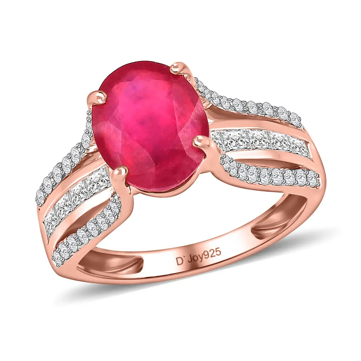 Ilakaka Hot Pink Sapphire Ring , White Topaz Accent Ring , Vermeil Rose Gold Over Sterling Silver Ring 4.65 ctw