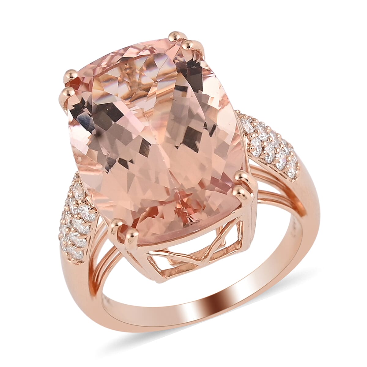 Iliana 18K Rose Gold AAA Marropino Morganite and G-H SI Diamond Ring (Size 8.0) 6 Grams 13.30 ctw
