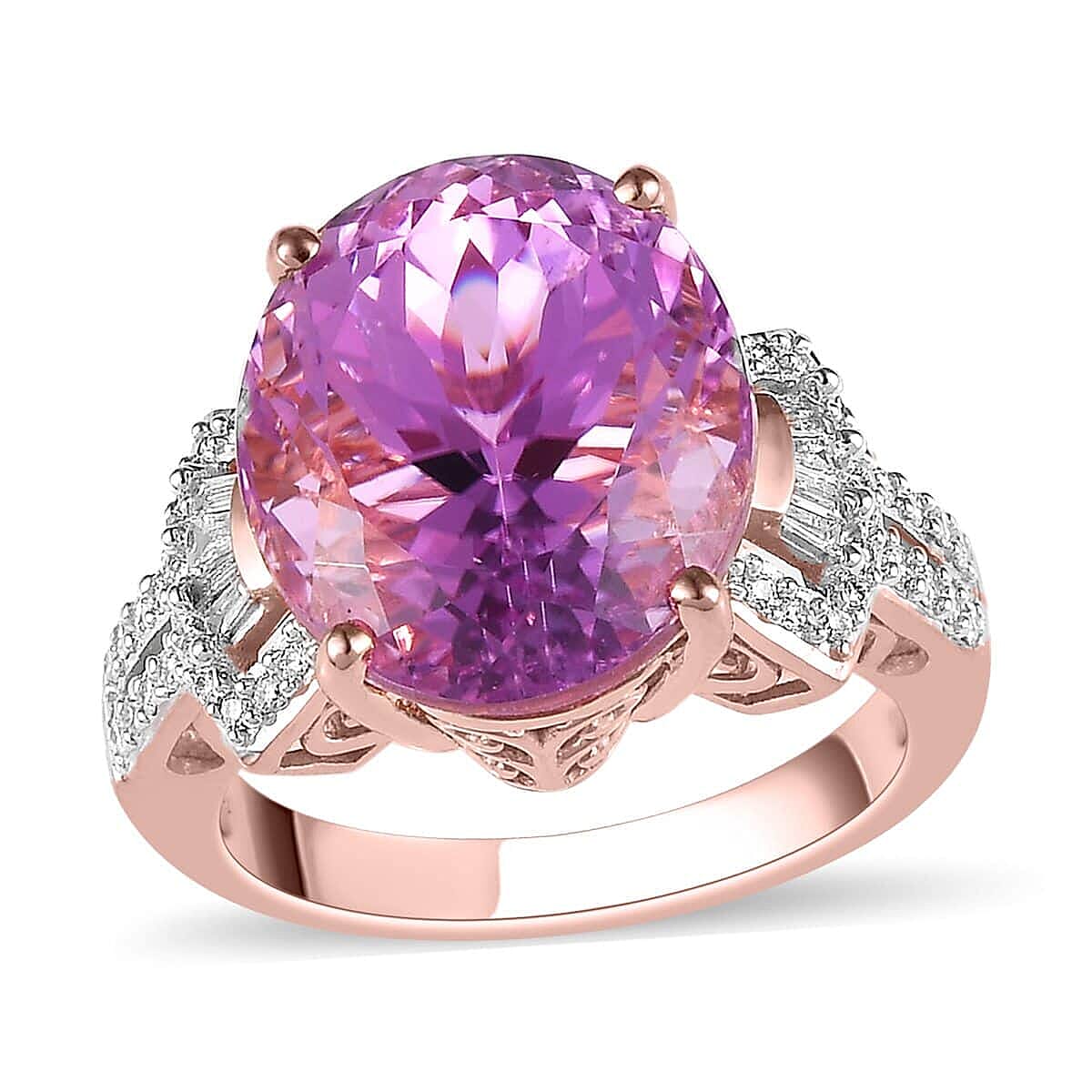 ILIANA 18K Rose Gold AAA Patroke Kunzite and G-H SI Diamond Ring 6.90 Grams 12.30 ctw