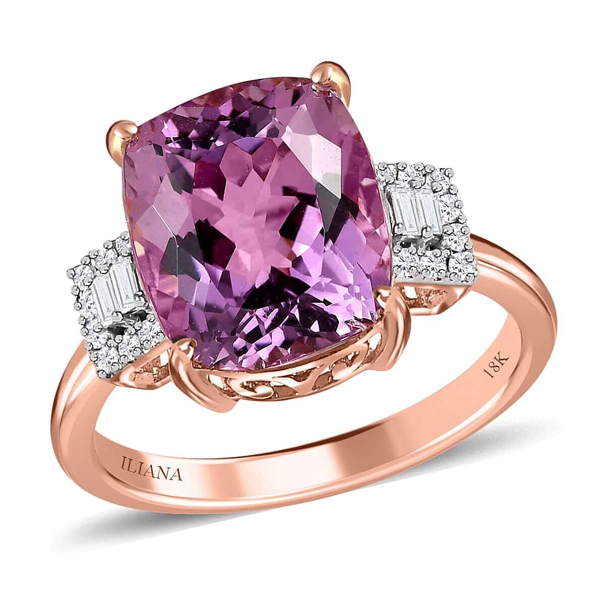 Iliana 18K Rose Gold AAAA Patroke Kunzite and Diamond G-H SI Ring (Size 6.5) 5.65 ctw
