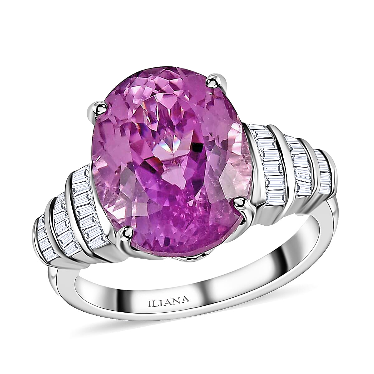 Iliana 18K White Gold AAA Patroke Kunzite and G-H SI Diamond Ring (Size 7.5) 5.90 Grams 7.85 ctw