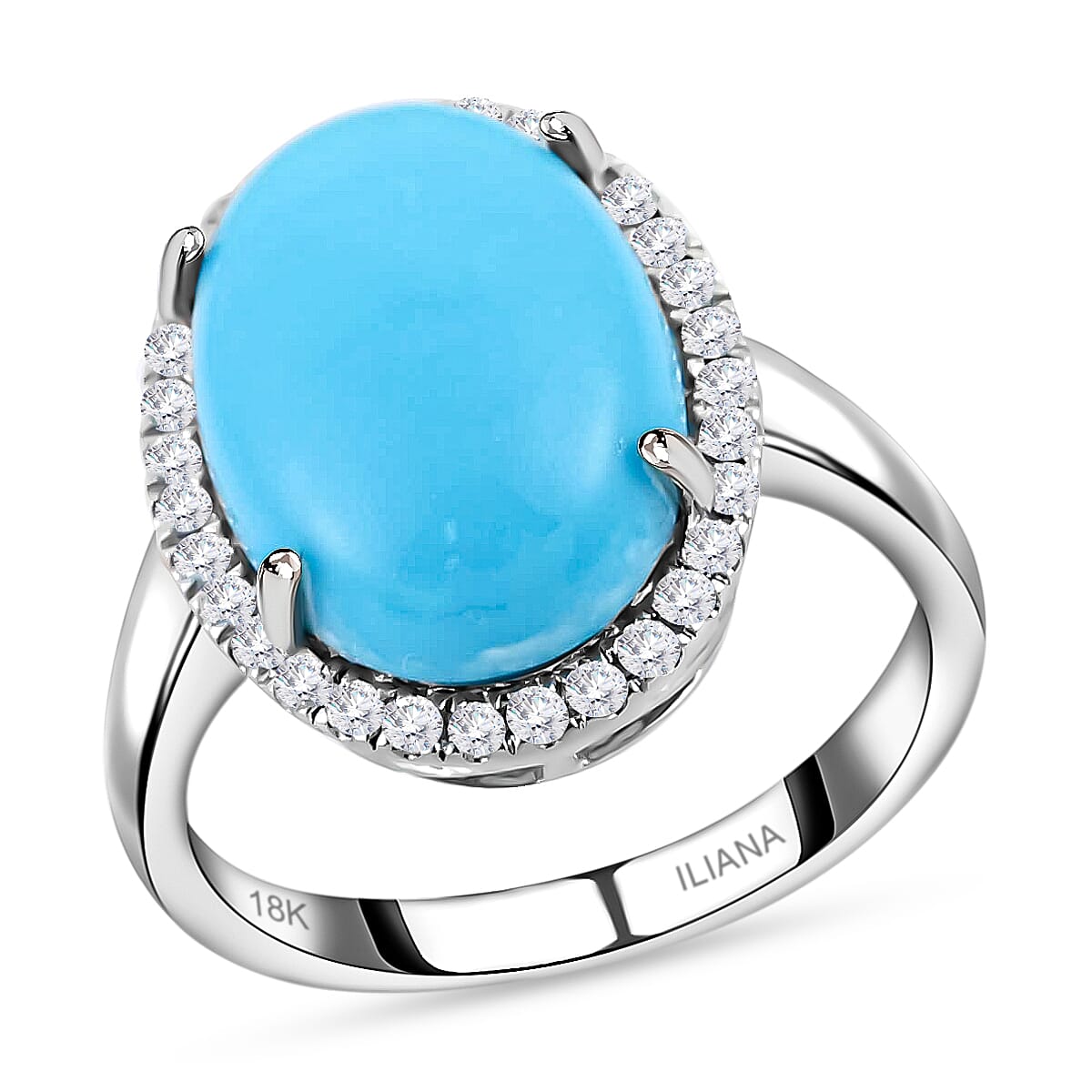 Iliana 18K White Gold AAA Sleeping Beauty Turquoise and G-H SI Diamond Halo Ring (Size 5.0) 4.85 Grams 4.25 ctw
