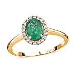 Iliana 18K Yellow Gold AAA Kagem Zambian Emerald and G-H SI Diamond Halo Ring (Size 8.0) 1.40 ctw