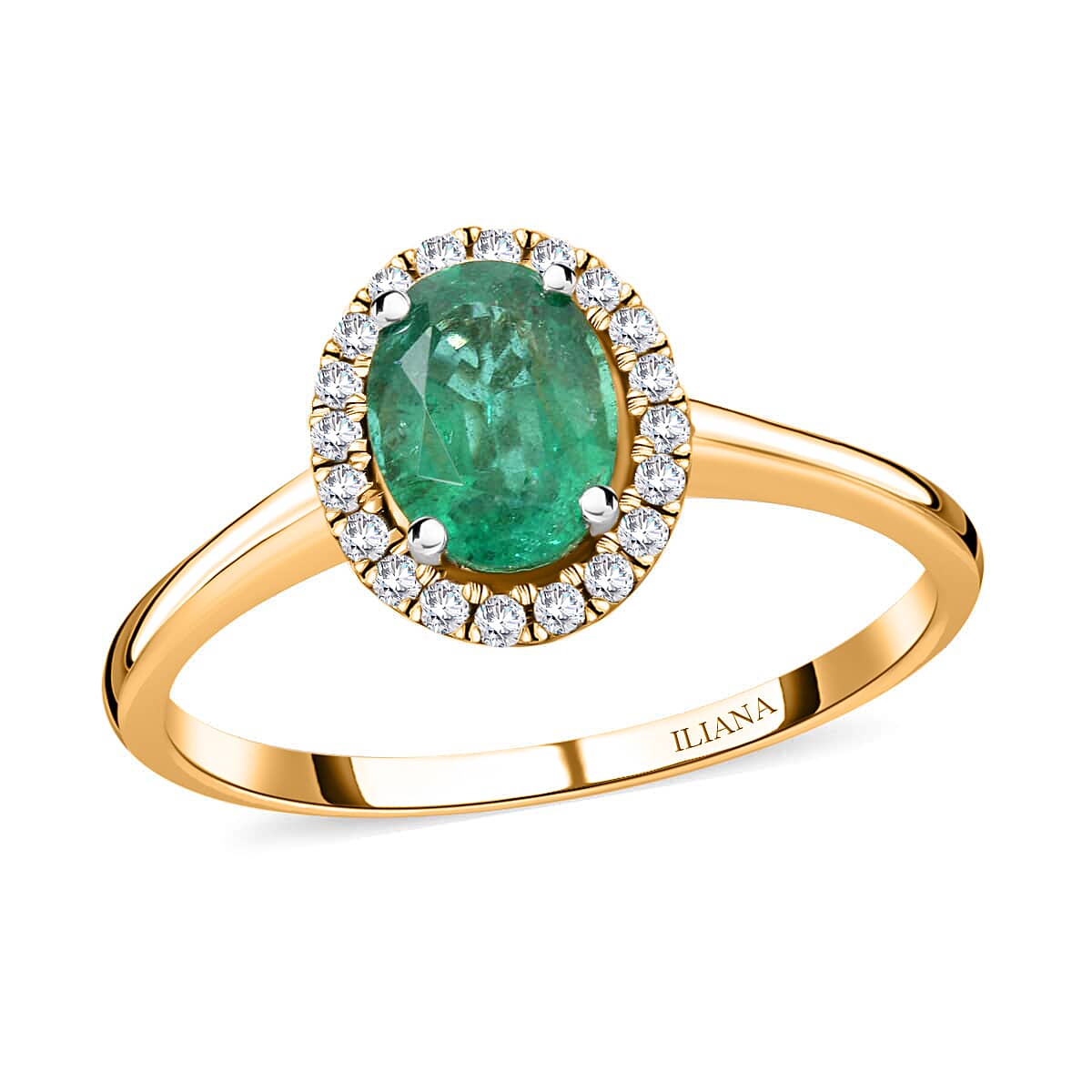 Indulge in the ultimate luxury with our Iliana Kagem Zambian emerald ring in 18K yellow gold. This halo ring showcases expert craftsmanship and sophisticated design for true elegance. Let this gold ring reflect your refined taste and passion for unique, high-end jewelry.
