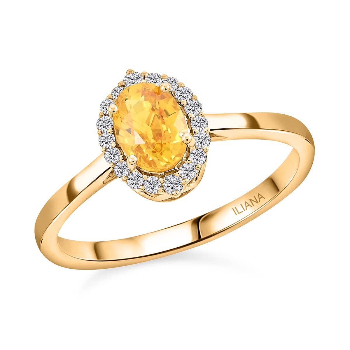 Iliana 18K Yellow Gold AAA Madagascar Yellow Sapphire, Diamond (G-H, SI) (0.17 cts) Halo Ring (Size 8.5) 1.05 ctw