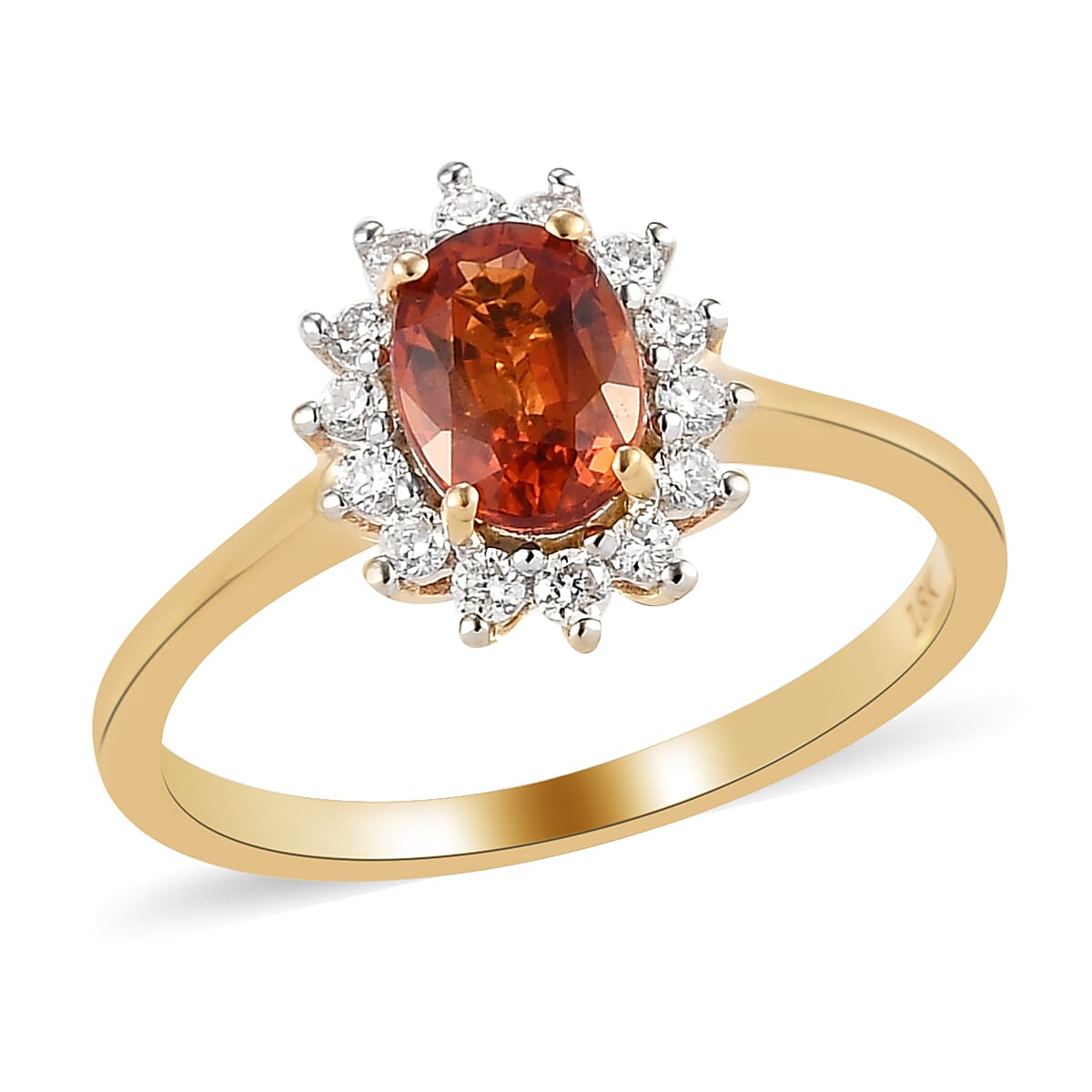 Iliana 18K Yellow Gold AAA Songea Sapphire and G-H SI Diamond Halo Ring (Size 7.0) 3.10 Grams 1.35 ctw