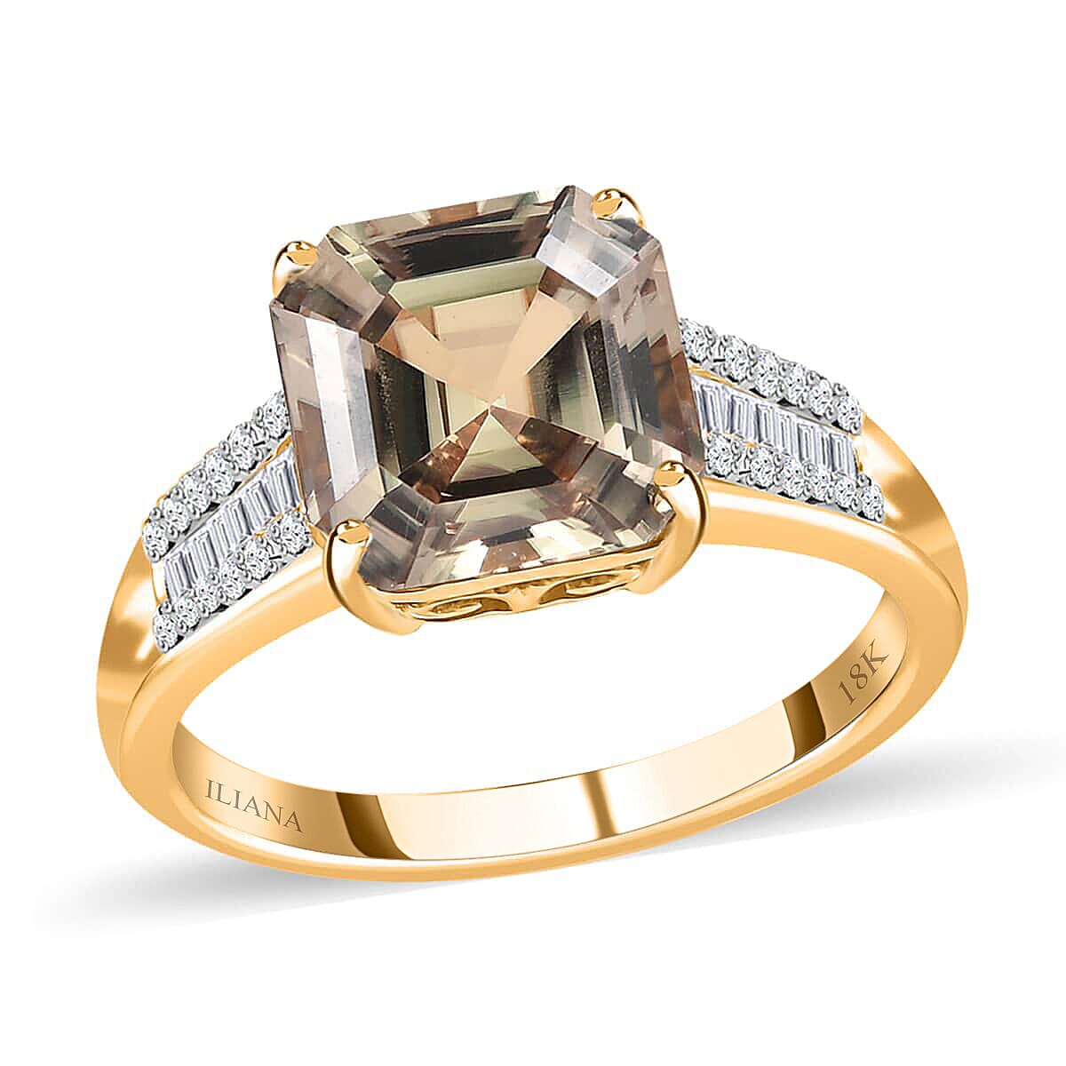 Discover the ultimate symbol of intimate luxury with the Iliana 18K yellow gold AAA turkizite ring. This timeless artifact is meticulously crafted, presenting an octagon-shaped AAA turkizite cradled in a regal setting of four prongs. Adorned with rows of sparkling diamond rounds and channel-set diamond baguettes, this premium gemstone ring promises an irresistible allure that redefines opulence. A tempting possession, this yellow gold ring exudes an aura of exclusivity and grandeur, adding to every woman's exquisite jewelry collection.