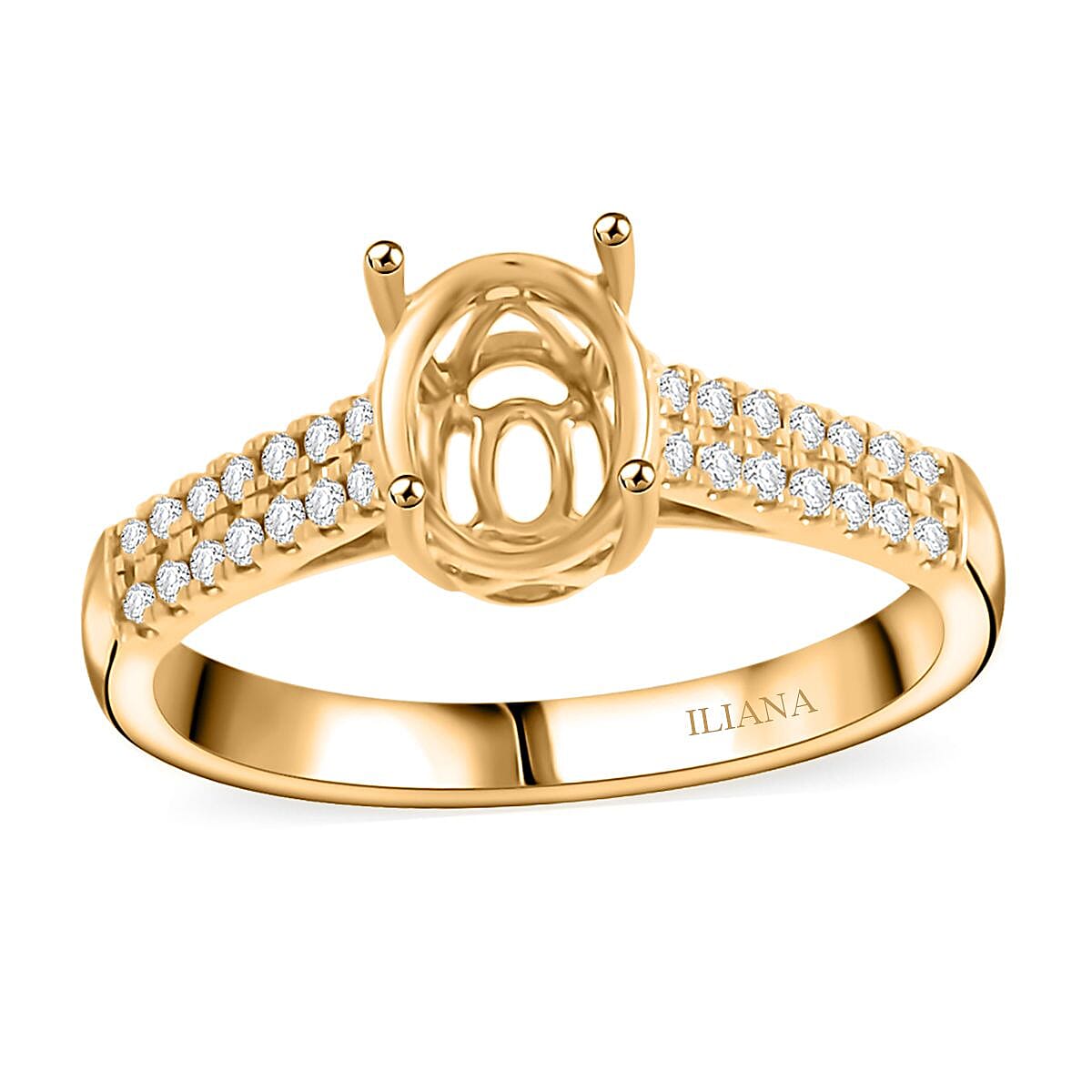 Iliana 18K Yellow Gold Diamond G-H, SI Mounting Ring (Size 6.0) 4.21 Grams (Oval 8x6mm) 0.22 ctw