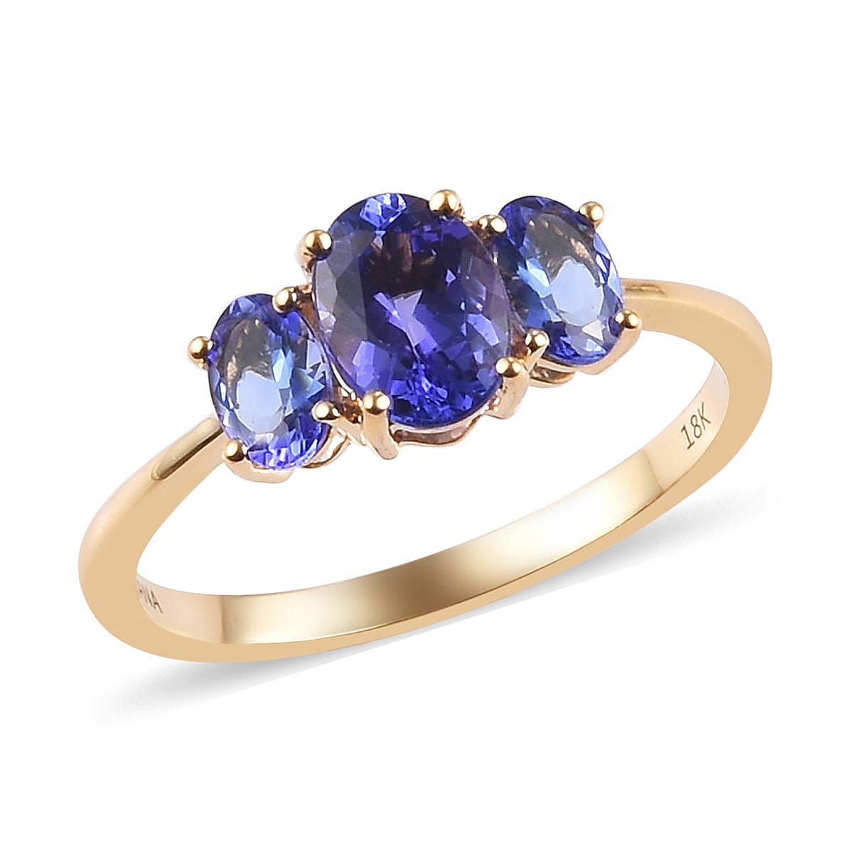 ILIANA 2.30 ctw AAA Tanzanite Trilogy Ring in 18K Yellow Gold with Appraised Certificate 3 Grams