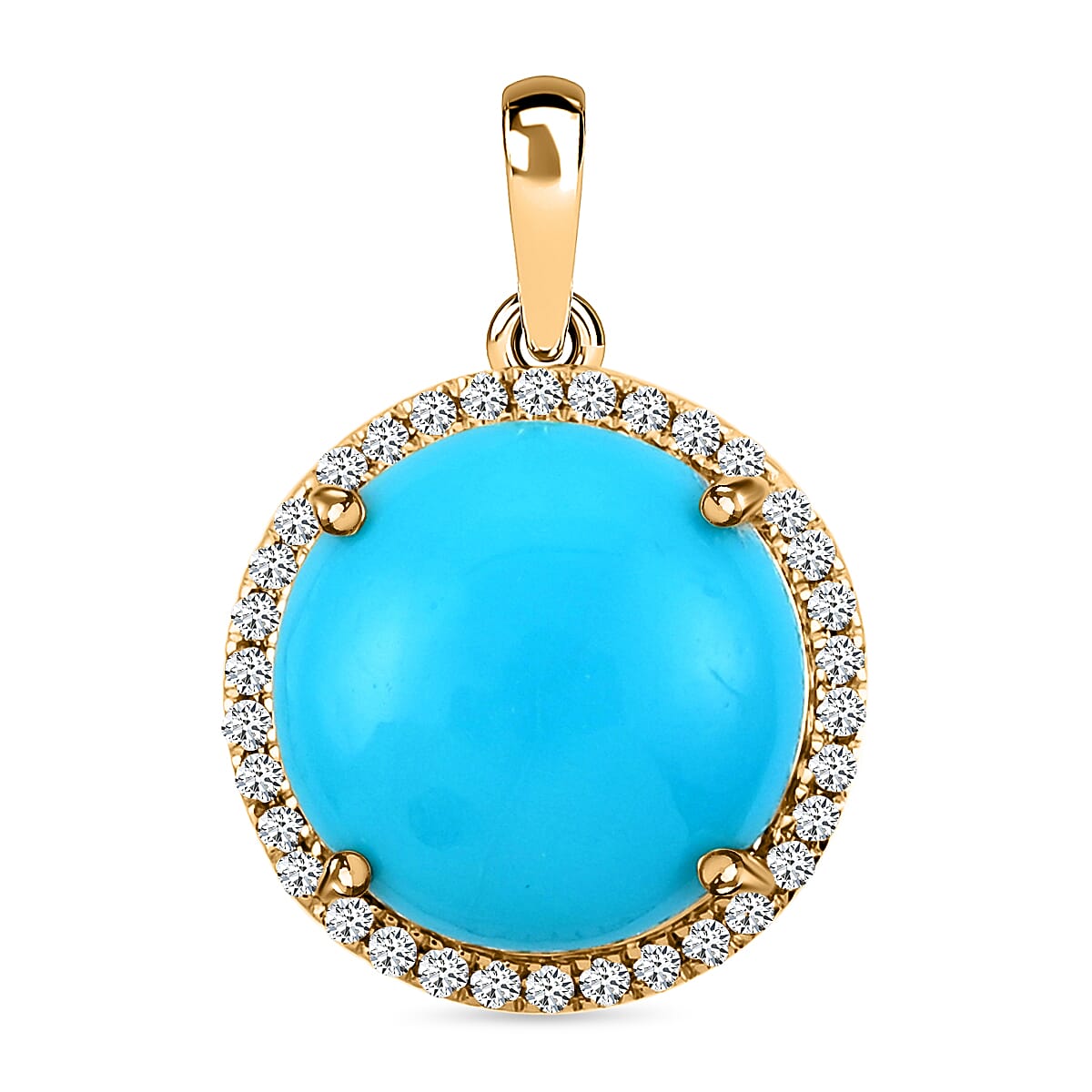 ILIANA 5.00 ctw AAA Natural Arizona Sleeping Beauty Turquoise and Diamond G-H SI Pendant in 18K Yellow Gold
