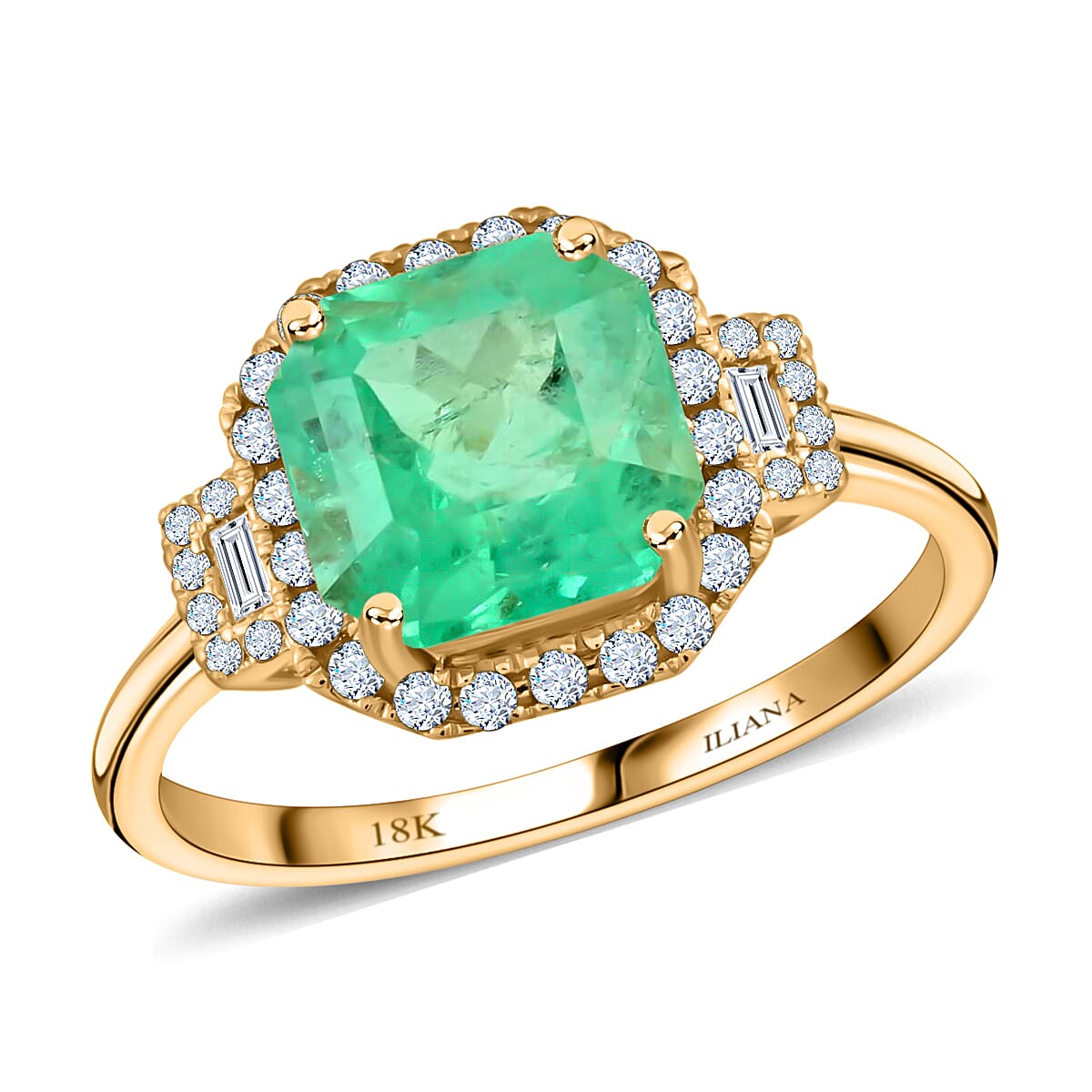 ILIANA AAA Boyaca Colombian Emerald and Diamond Ring in 18K Yellow Gold 3.40 Grams 2.60 ctw