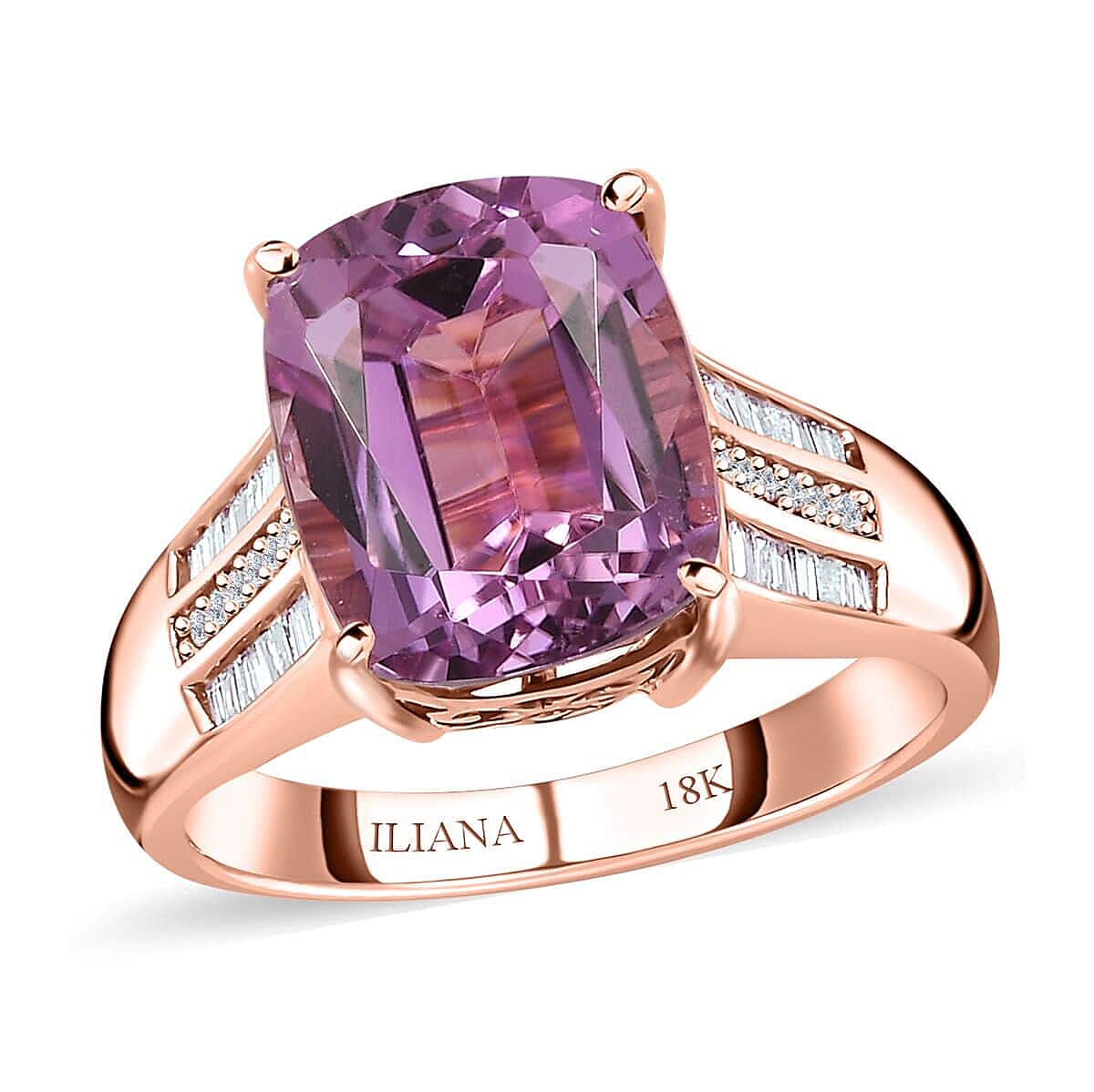 Iliana AAA Patroke Kunzite and SI Natural Pink and White Diamond 7.25 ctw Ring in 18K Rose Gold (Size 10.0)